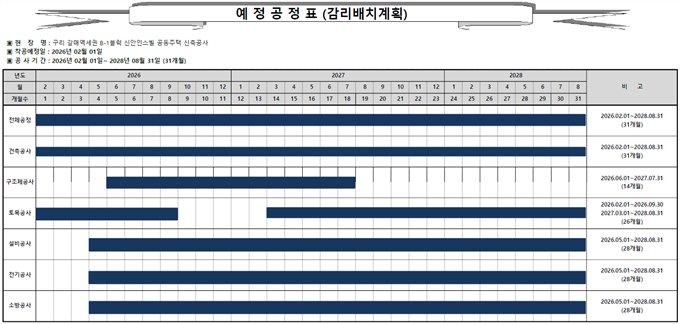 ○ 공사기간(건축) : 2026. 02. 01. ~ 2028. 08. 31. (31개월)