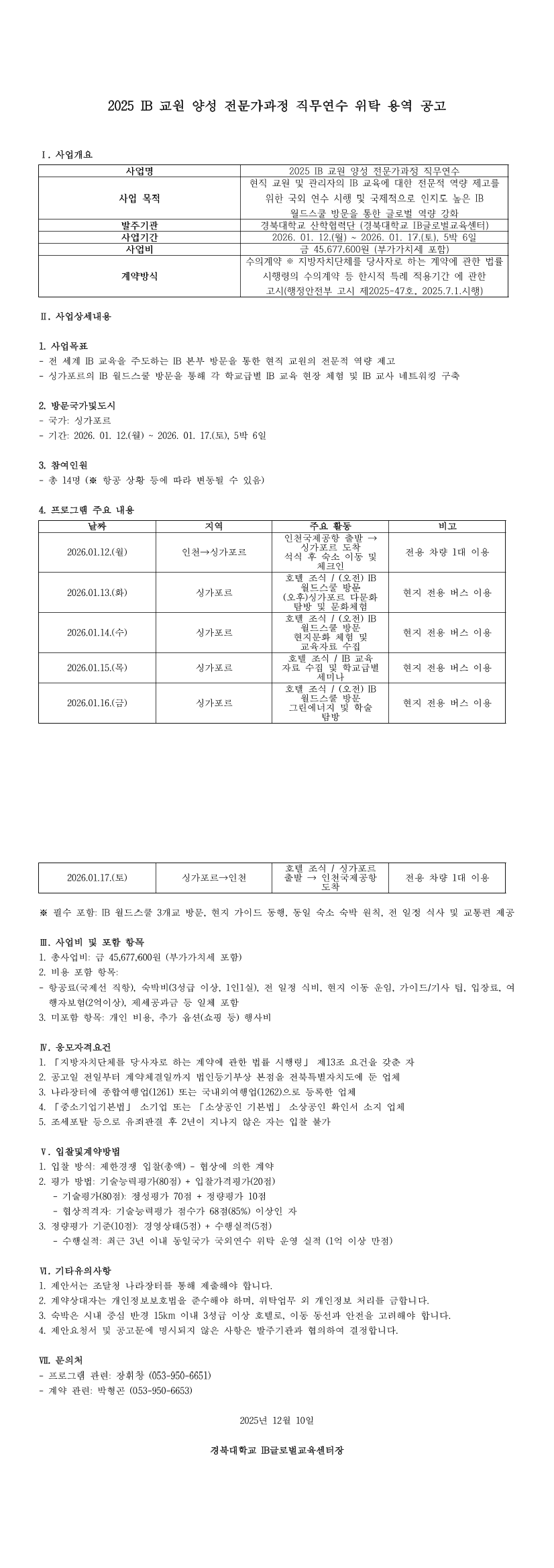 2025 IB 교원 양성 전문가과정 직무연수 위탁 용역 |