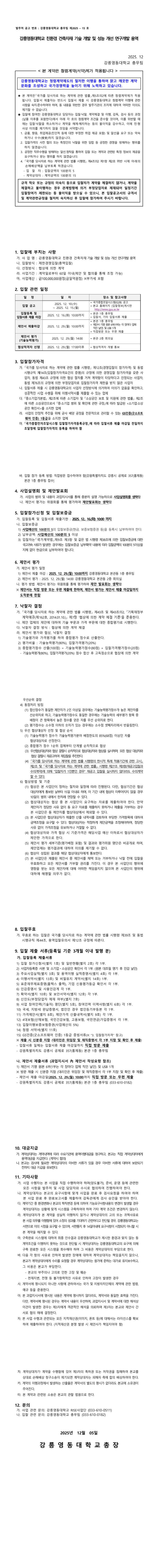 강릉영동대학교 친환경 건축자재 기술 개발 및 성능 개선 연구개발 용역 |