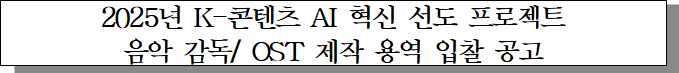 ㅇ 입찰건명 : 2025년 K-콘텐츠 AI 혁신 선도 프로젝트 음악감독 및 OST 제작사 선정