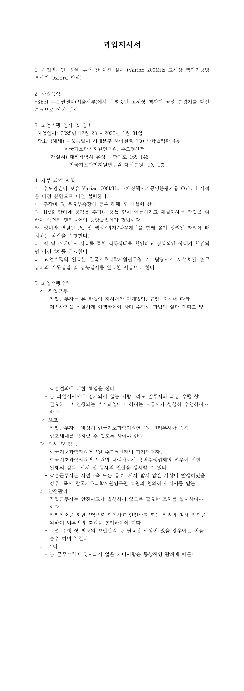 고체 NMR 실험 신뢰성 구축을 위한 마그넷 이전 설치 용역 |