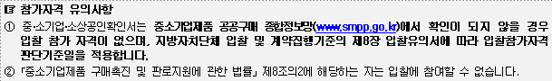 나.「중소기업기본법」제2조의 2 및 제2조의 3에 따른 중·소기업자 또는「소상공인 보호 및 지원에 관한 법률」제2조에 따른 소상공인으로서 중·소기업·소상공인확인서를 소지한 업체(전자입찰서 제출 마감일 전일까지 발급된 것으로 유효기간 내에 있어야하며, 낙찰자의 경우 계약 체결일까지 유효기간 내에 있어야 함)