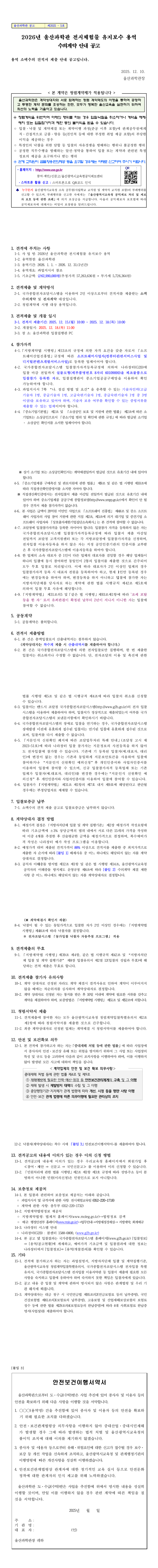 2026년 울산과학관 전시체험관 유지보수 용역 수의계약 안내 공고 |