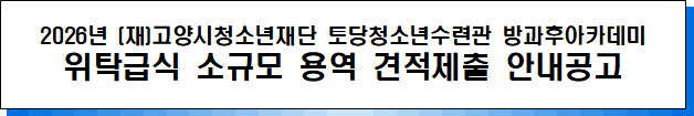 ▢ 용 역 명: 2026년 (재)고양시청소년재단 토당청소년수련관