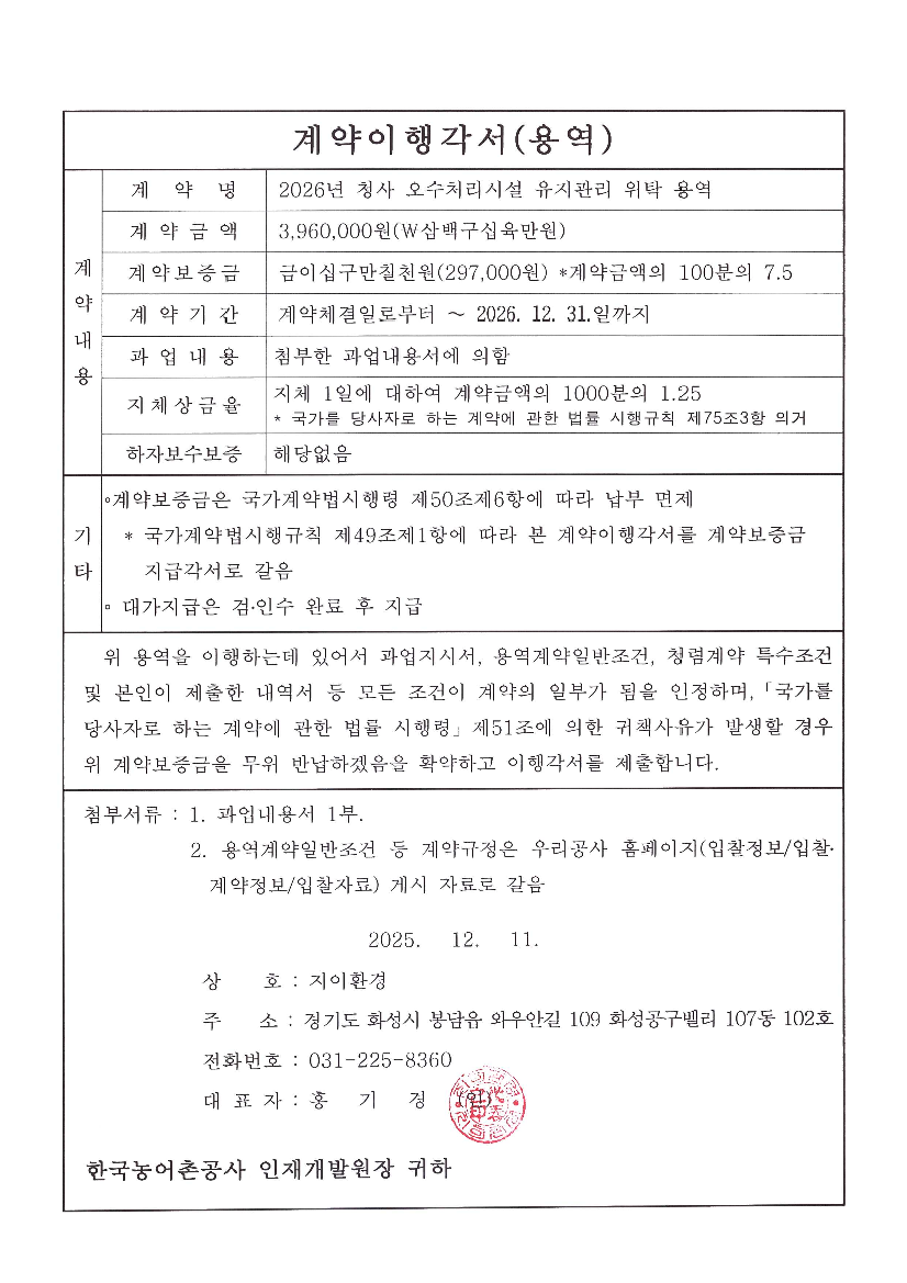 2026년 청사 오수처리시설 유지관리 위탁 용역 |