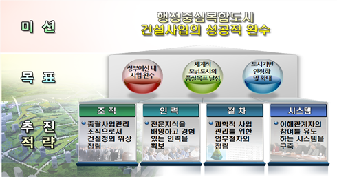 바. 행복도시 건설사업의 성공적 완수를 위해 행복청은 다음과 같은 목표로 사업시행 중에 있다.