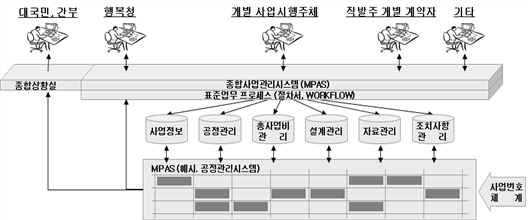마. 행복도시건설과 연계하여 관리대상 사업들의 방대한 데이터를 효율적으로 관리할 필요가 있으며, 주택(공동·단독주택), 학교 및 상가 등 행정중심복합도시 건설 3단계 종료까지 사업관리 필요