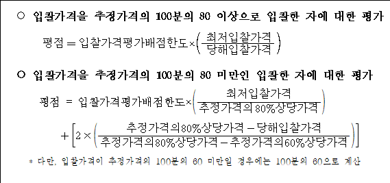 5. 공동수급체의 경우 구성원별 해당 점수에 지분율을 곱한 후 그 점수들을 합산하여 최종 평가하고, 평가 결과 소수점 이하의 숫자가 있는 경우 소수점 다섯째자리에서 반올림 한다.