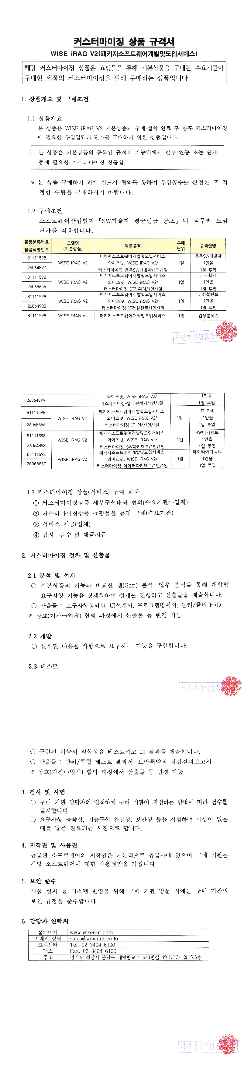 SW 3자단가(WISE iRAG V2 (커스터마이징) (주)와이즈넛) |