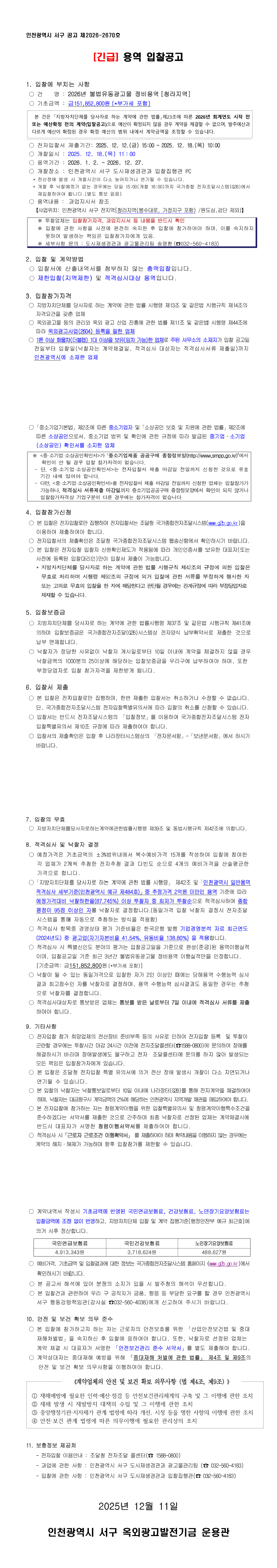 (긴급)2026년 불법유동광고물 정비용역[청라지역] |
