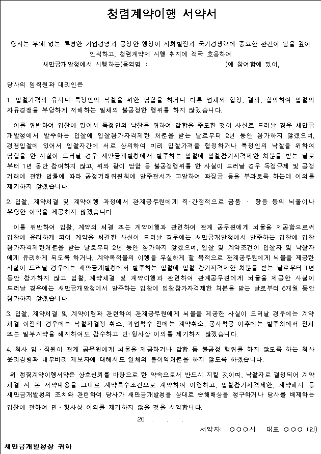 14. 새만금개발청 청렴계약이행 및 보안각서 제출