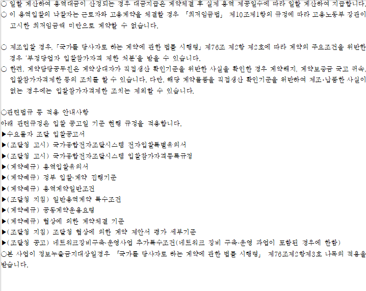 ○ 본 공고는 (계약예규)「협상에의한계약체결기준」 제7조제6항 및 「조달청 협상에 의한 계약 제안서평가 세부기준」 제9조제