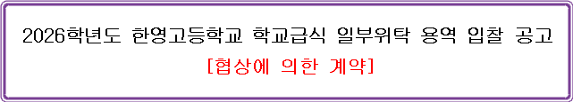 ■ 입찰건명 : 2026학년도 한영고등학교 학교급식 일부위탁 용역