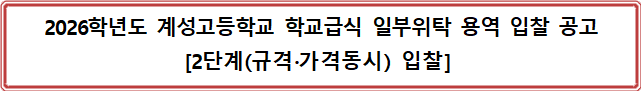 가. 용역명: 2026학년도 계성고등학교 학교급식 일부위탁 용역