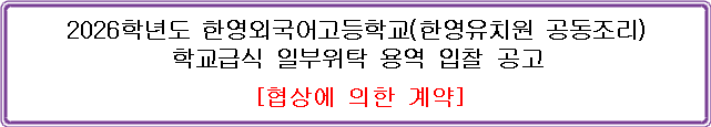 가. 용역명 : 2026학년도 한영외국어고등학교(한영유치원 공동조리) 학교급식 일부위탁 용역 입찰공고