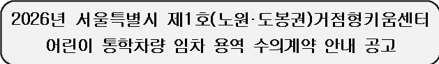 「2026년 서울특별시 제1호(노원·도봉권)거점형키움센터 어린이 통학차량 임차 용역」에 대한 견적서 제출을 다음과 같이 안내 공고합니다.