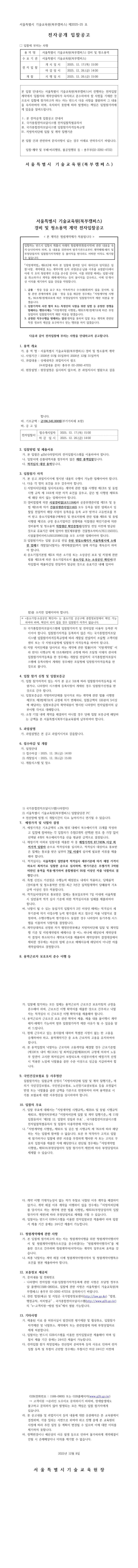 2026년 서울특별시 기술교육원(북부캠퍼스) 경비 및 청소용역 |