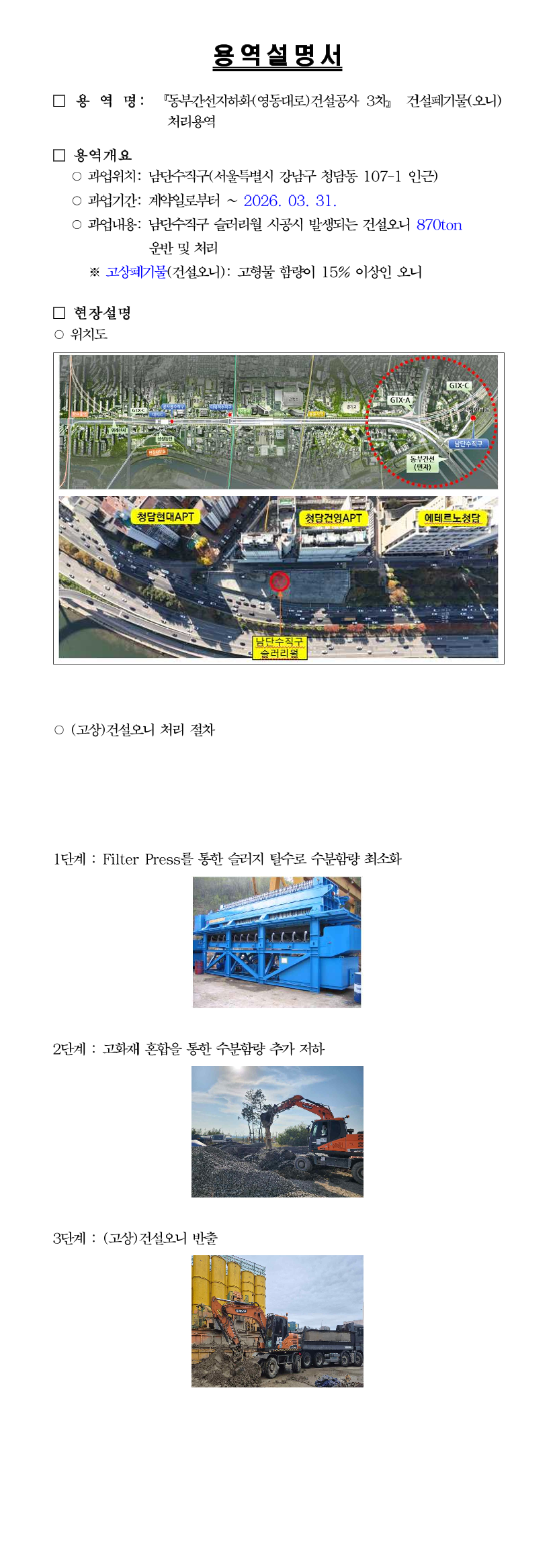 동부간선지하화(영동대로)건설공사(3차) 건설폐기물(오니)처리용역 |