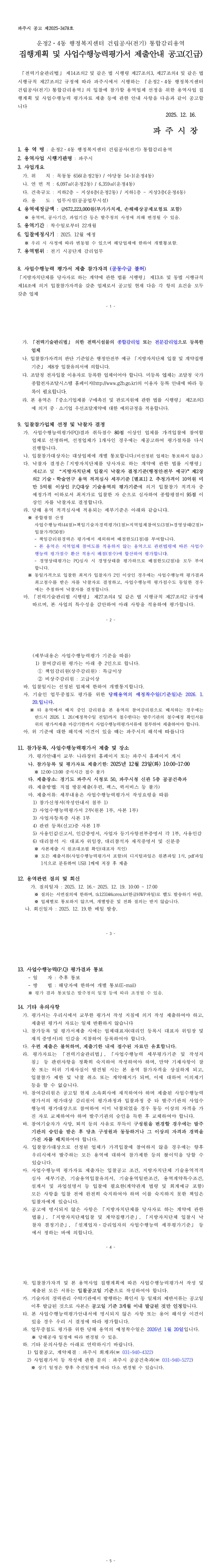 운정2·4동 행정복지센터 건립공사(전기) 통합감리용역 집행계획 및 사업수행능력평가서 제출안내 공고(긴급) |