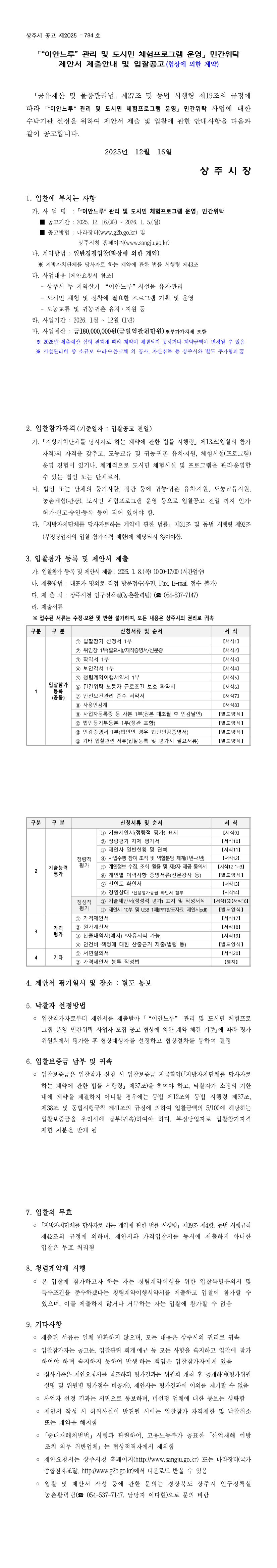 『이안느루 관리 및 도시민 체험프로그램 운영』 민간위탁(협상에 의한 계약) |