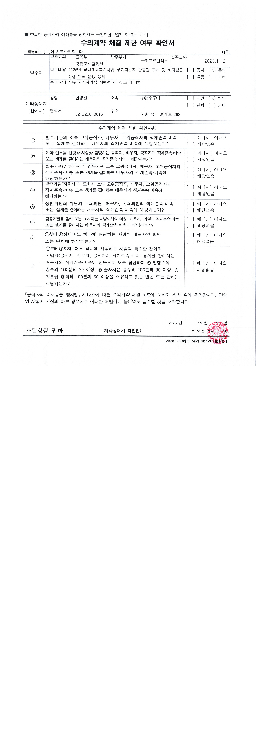 2026년 교원해외파견사업 항공권 구매 및 비자 발급 대행 용역 |