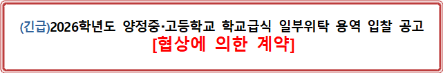가. 용역명: 2026학년도 양정중고등학교 학교급식 일부위탁 용역업체 선정