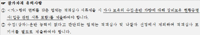 가. 폐기물관리법 제25조에 의거 각 목중 1개 이상의 자격을 갖춘 업체로 수집(상차)·운반 능력(자체 차량보유)을 갖춘 업체