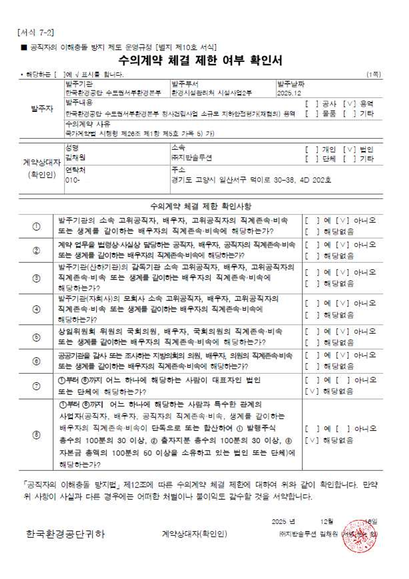 수도권서부환경본부 청사건립사업소규모 지하안전평가(재협의) 용역 |