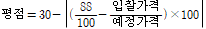 - 투찰률이 98% 이상인 경우 평점은 20점으로 함
