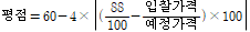 - 투찰률이 88.25% 이상인 경우 평점은 65점으로 함