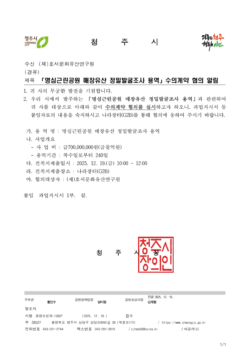 명심근린공원 매장유산 정밀발굴조사 용역 |