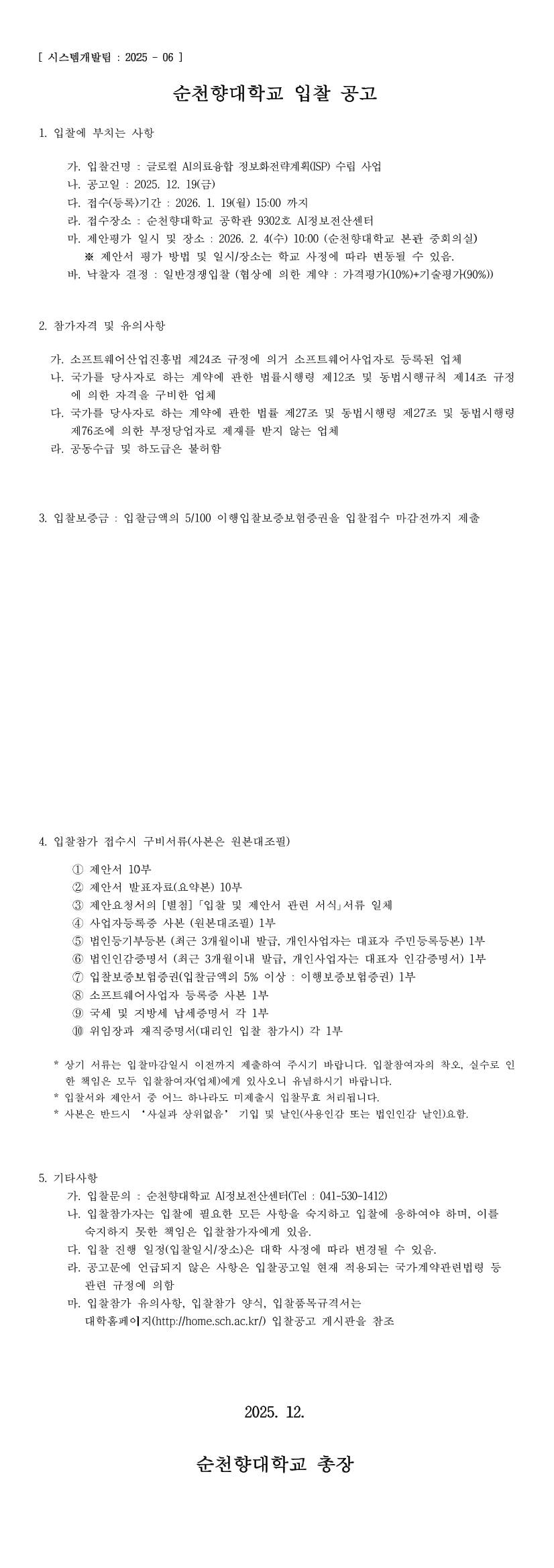 순천향대학교 글로컬 AI의료융합 정보화전략계획(ISP) 수립 사업 |