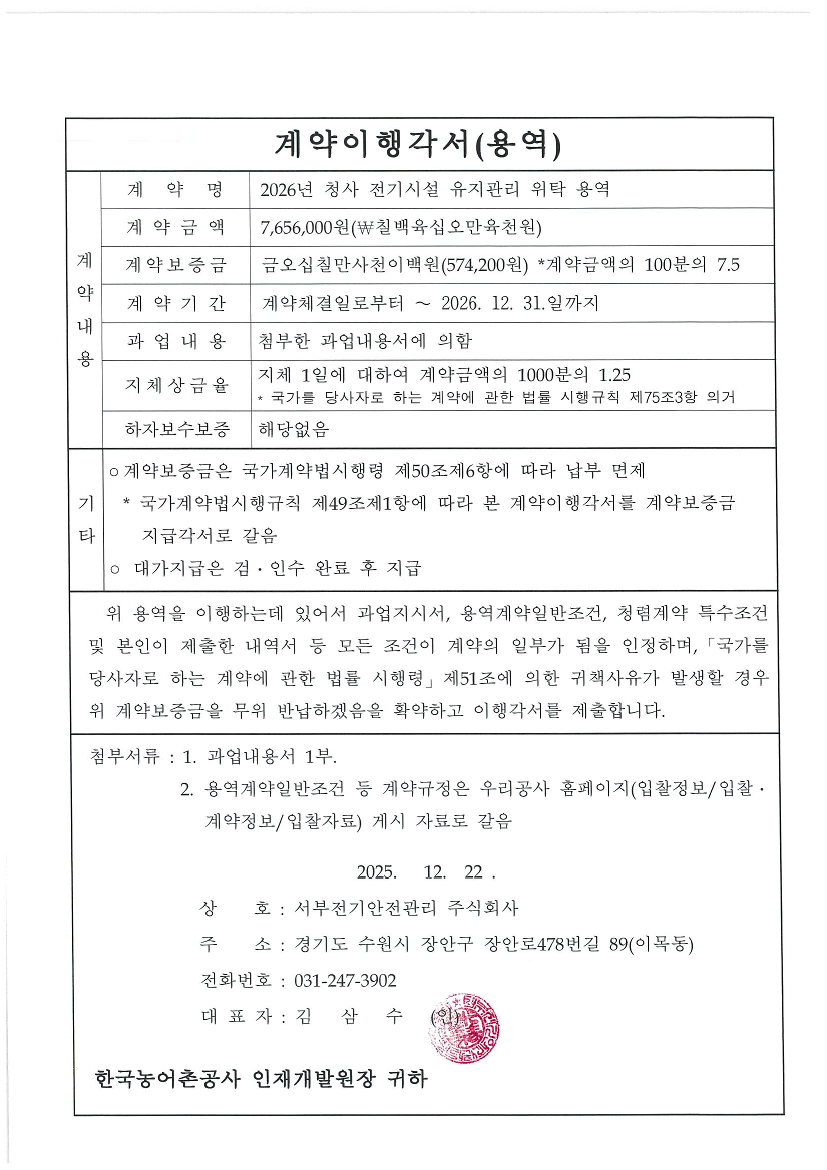 2026년 청사 전기시설 유지관리 위탁 용역 |