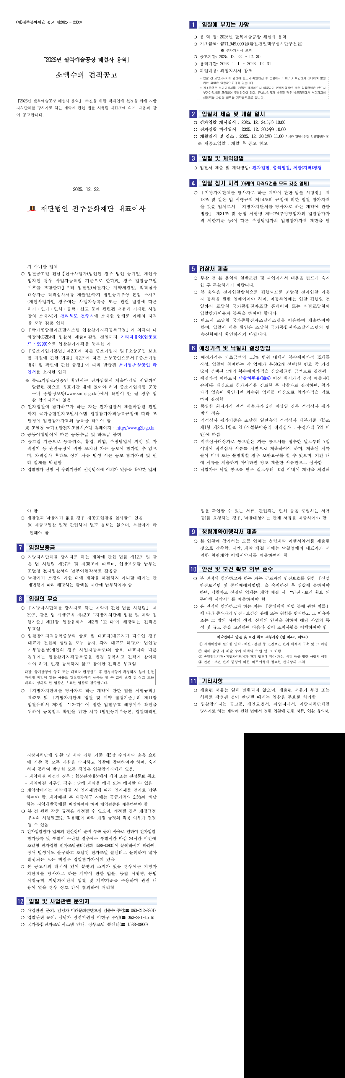 「2026년 팔복예술공장 해설사 용역」소액수의 견적공고 |