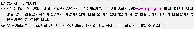 ※ 본 입찰에 미 자격자가 고의로 입찰에 참가할 때에는 「지방자치단체를 당사자로 하는 계약에 관한 법률」 시행령 제92조의 규정에 의거 관련법규에 따라 부정당업자로 제재할 수 있습니다.