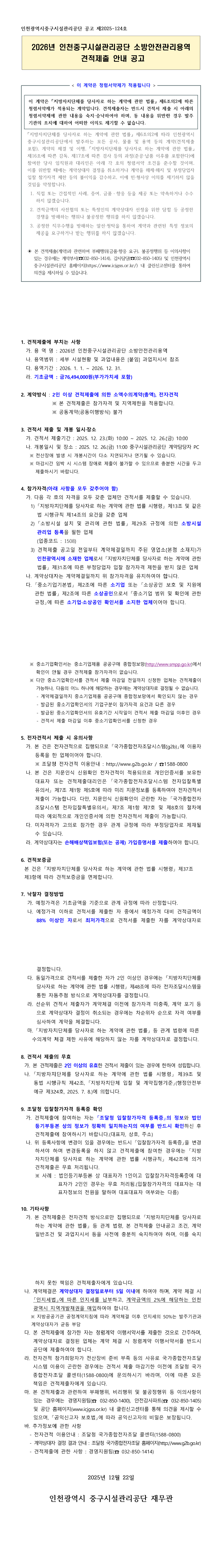 2026년 인천중구시설관리공단 소방안전관리용역 견적제출 |