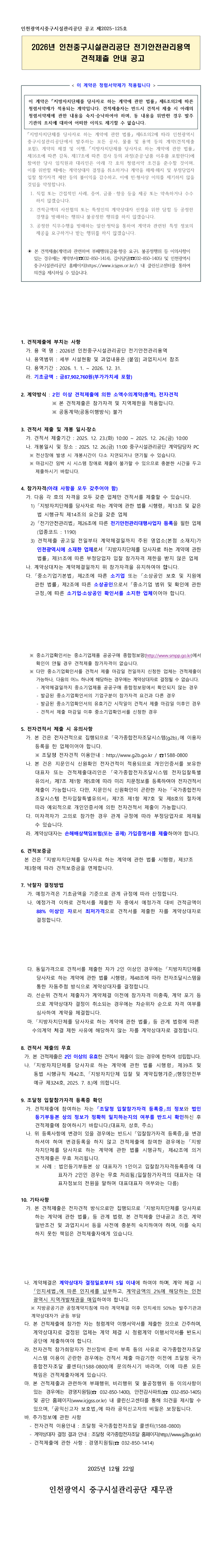 2026년 인천중구시설관리공단 전기안전관리용역 견적제출 |