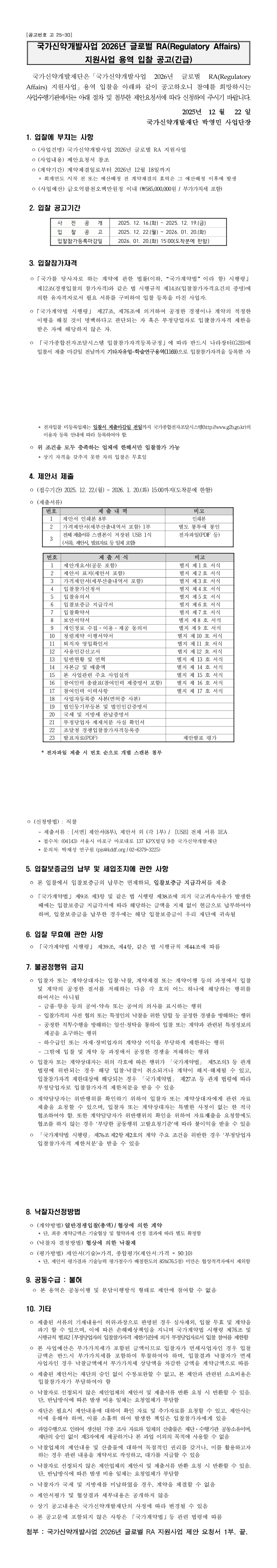 국가신약개발사업 2026년 글로벌 RA(Regulatory Affairs) 지원사업 |