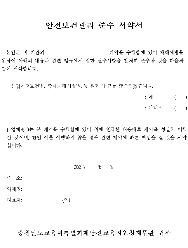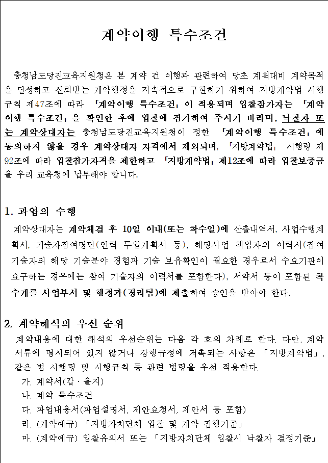 ○ 다만, 낙찰대상자로 선정된 업체는 대표자가 서명하여 충청남도당진교육지원청에 별도로 제출하여야 합니다.
