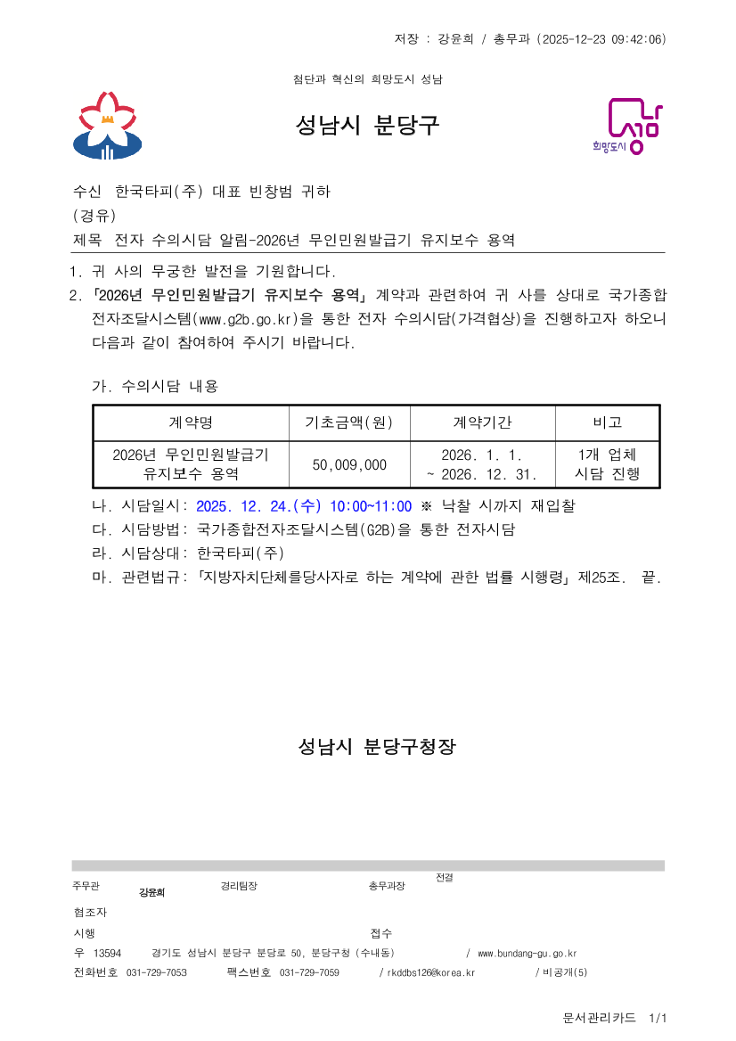 2026년 무인민원발급기 유지보수 용역 |