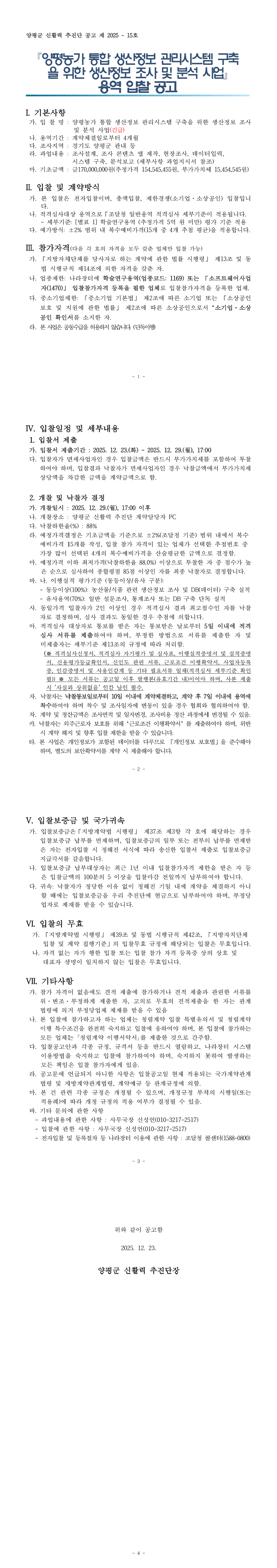 (긴급)양평농가 통합 생산정보 관리시스템 구축을 위한 생산정보 조사 및 분석 사업 |