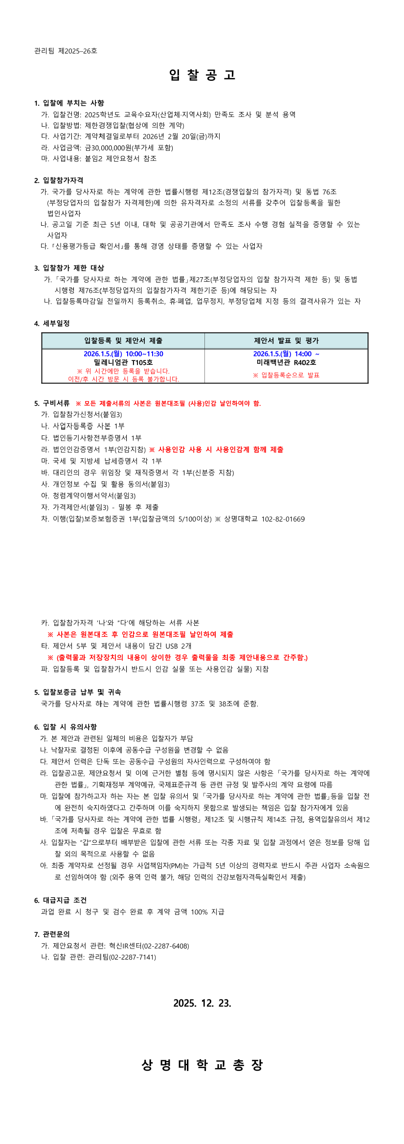 2025학년도 교육수요자(산업체·지역사회) 만족도 조사 및 분석 용역 |