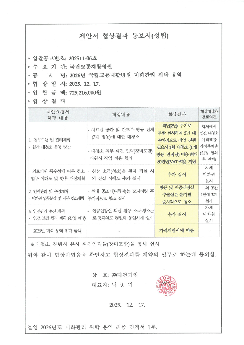 2026년 국립교통재활병원 미화관리 위탁 용역 |