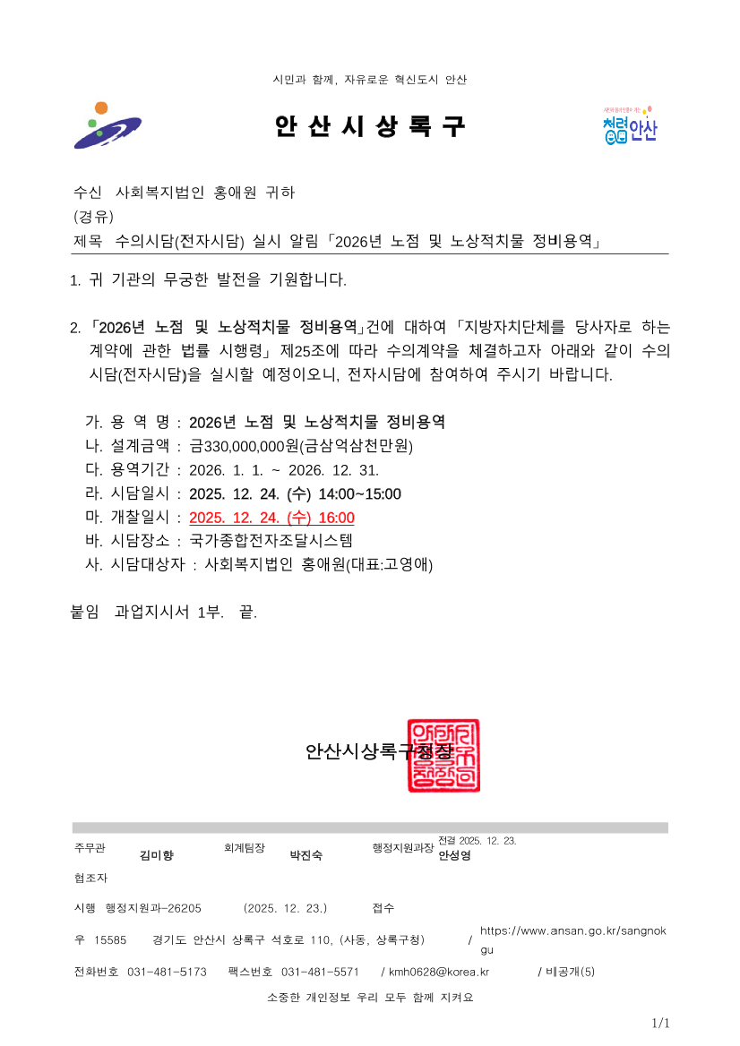 2026년 노점 및 노상적치물 정비용역 |