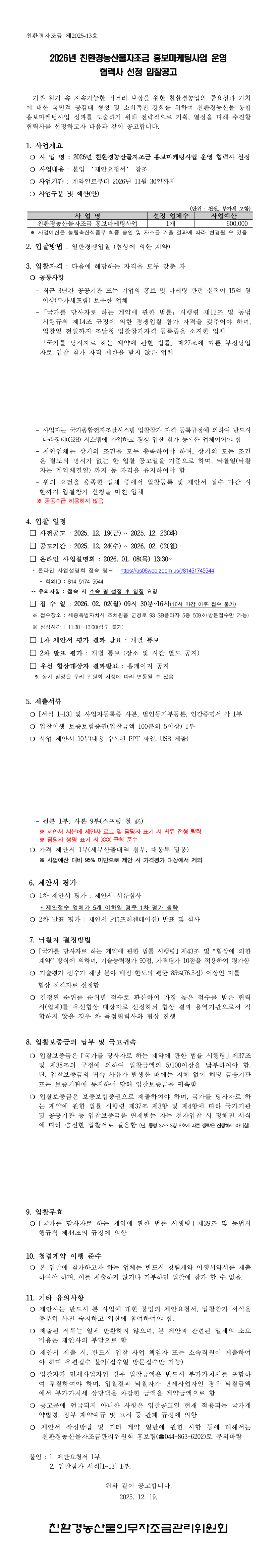 2026년 친환경농산물자조금 통합홍보마케팅사업 운영 협력사 선정 입찰공고 |