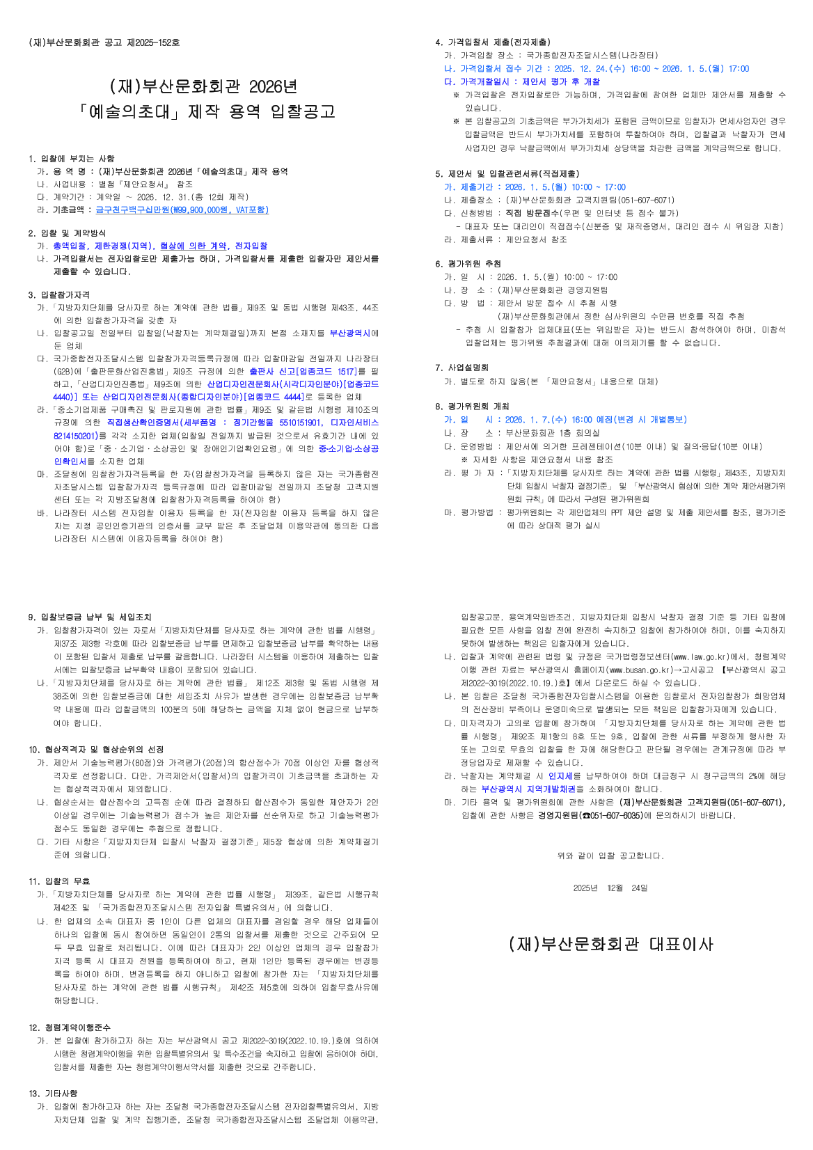 (재)부산문화회관 2026년 예술의초대 제작 용역 |