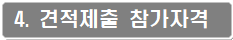 가. 본 견적제출 건은 전자문서로 된 견적서의 제출 방식으로만 집행하므로, 견적을 제출 하고자 하는 자는 국가종합전자조달시스템 입찰참가자격 등록규정에 따라 조달청에 입찰참가자격의 등록을 하여야 합니다.