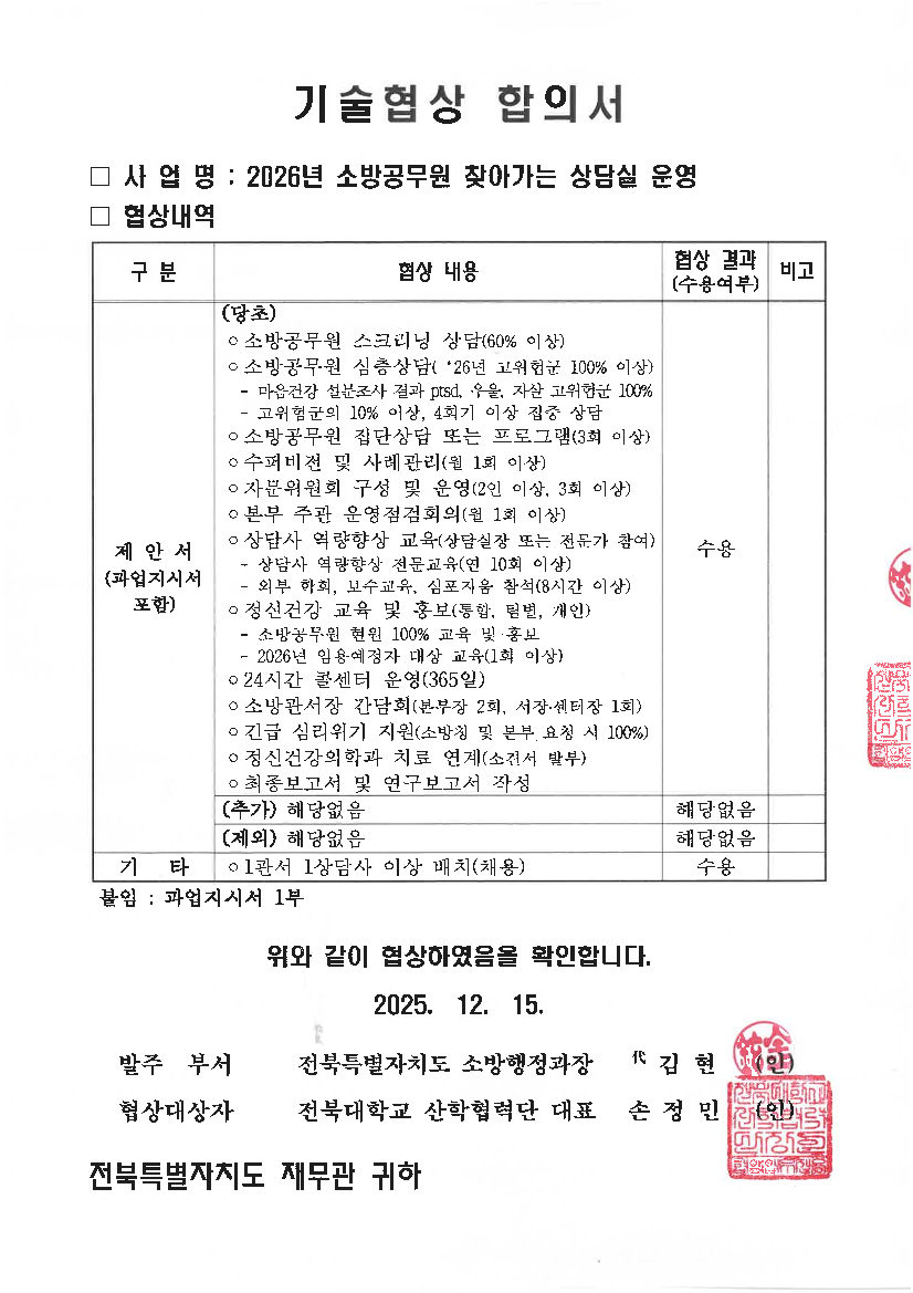 2026년 소방공무원 찾아가는 상담실 운영 용역 |