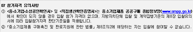 다.「중소기업기본법」제2조에 따른 중·소기업 또는「소상공인 보호 및 지원에 관한 법률」제2조에 따른 소상공인으로서「중소기업 범위 및 확인에 관한 규정」에 따라 발급된 <중·소기업·소상공인 확인서>를 소지한 업체