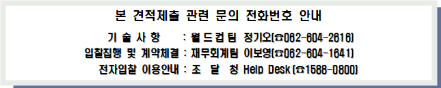 가. 본 회의 청렴계약제 시행으로 입찰에 참가하는 모든 업체는 광주광역시체육회 청렴계약 이행각서의 내용을 숙지하고 견적서 제출에 응하여야 하며, 견적서를 제출한 자는 동 각서를 본회에 제출한 것으로 간주합니다.